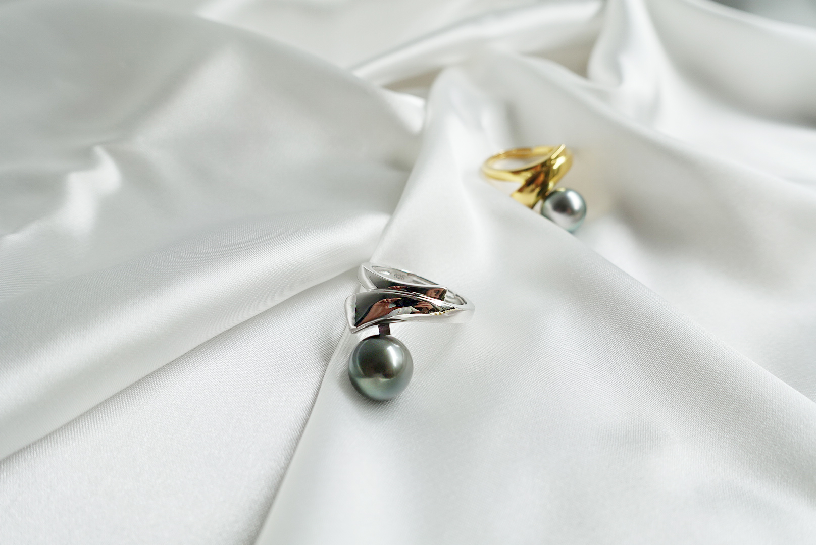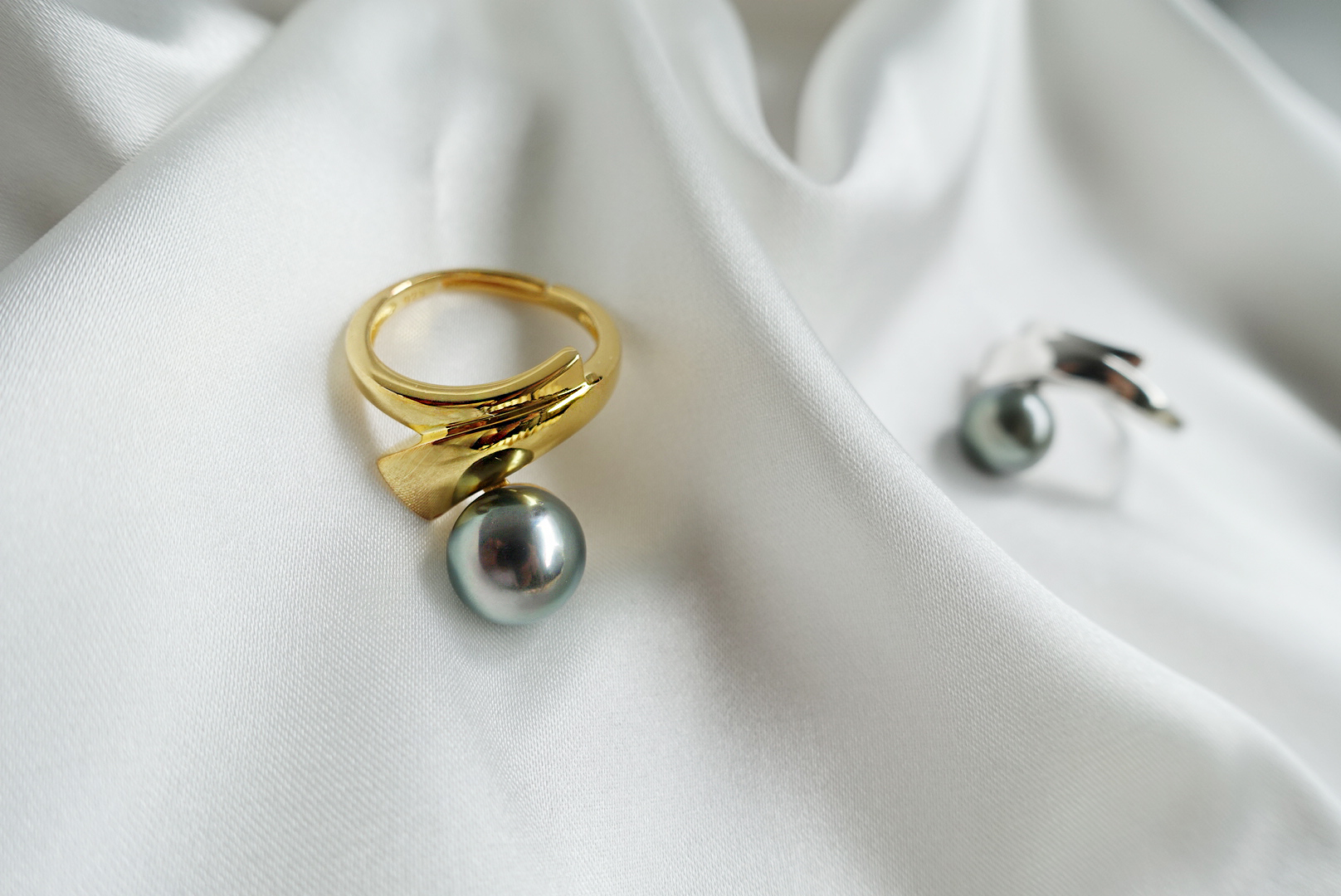 The elegant simplicity of this Tahitian pearl ring make it a standout. The ring features a designed band with a platform highlighting a round 10mm Tahitian pearl, band is in a highly polished 925 white gold / yellow gold plated silver material.